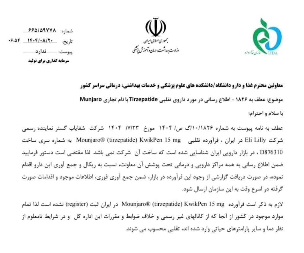 داروی تقلبی tirzepatide با نام تجاری Munjaro